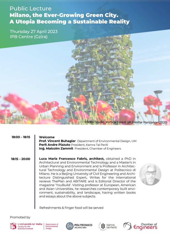 PUBLIC LECTURES | UM Department of Environmental Design in collaboration with Chamber of Engineers and Kamra Tal-Periti